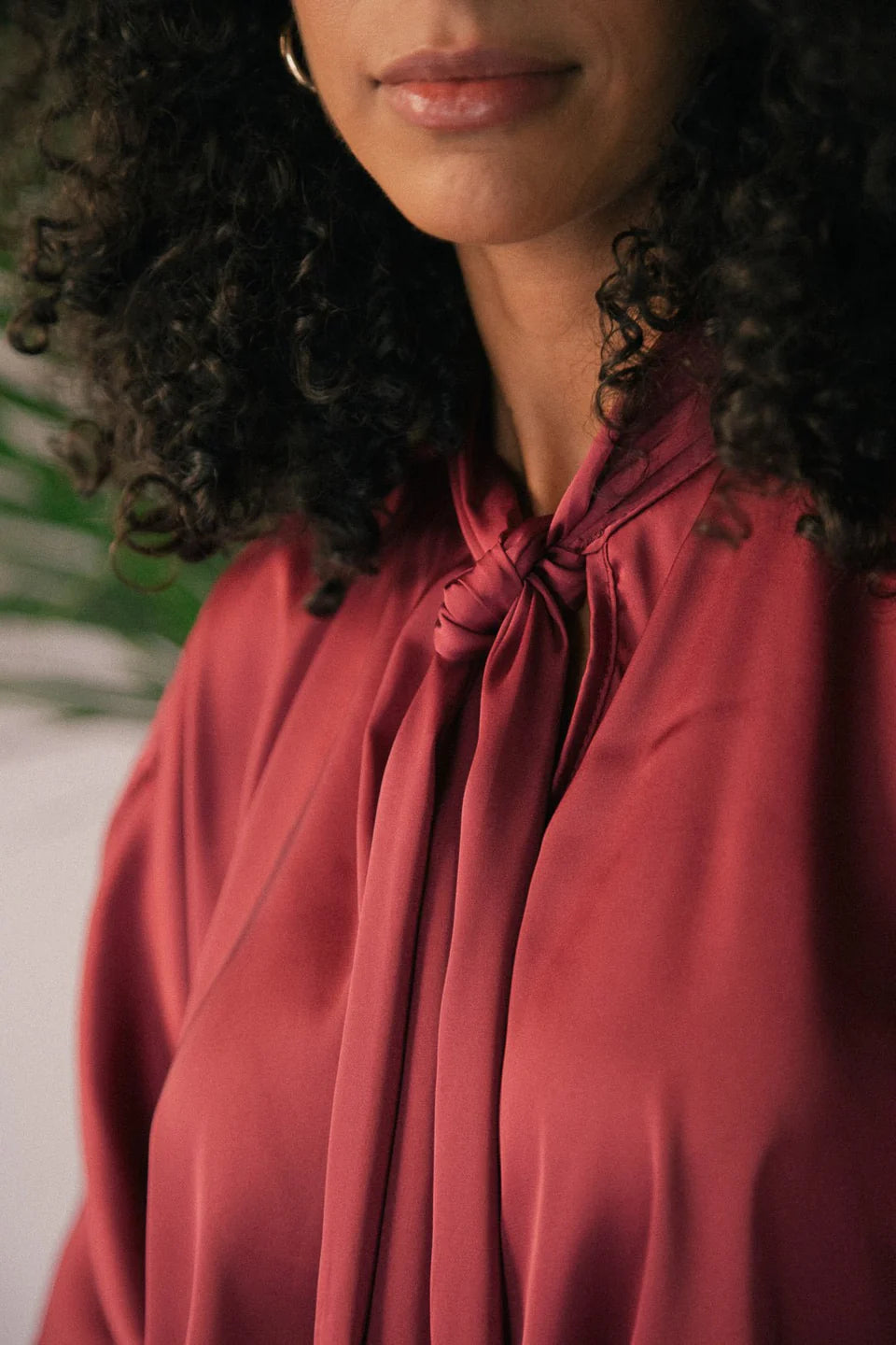 camicia satinata con fiocco a maniche lunghe con polsino .